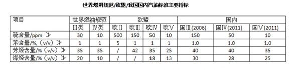 汽油標(biāo)準(zhǔn)主要指標(biāo)國內(nèi)外對比圖這意味著中國當(dāng)前的汽油標(biāo)準(zhǔn)是歐洲、日本的15倍,美國的5倍,柴油則是歐日標(biāo)準(zhǔn)的30余倍。這里的標(biāo)準(zhǔn),說的是規(guī)定上的標(biāo)準(zhǔn),而執(zhí)行上的情況,低得更加慘烈,2012年《齊魯晚報》在山東隨機(jī)抽取了6份93號汽油樣品,其中有2份汽油的硫含量高達(dá)680ppm、910ppm。